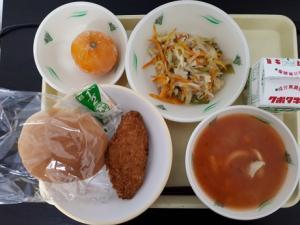 フィッシュバーガー 白身魚フライ 冷凍みかん ガーリックソテー ミネストローネ 牛乳 |
