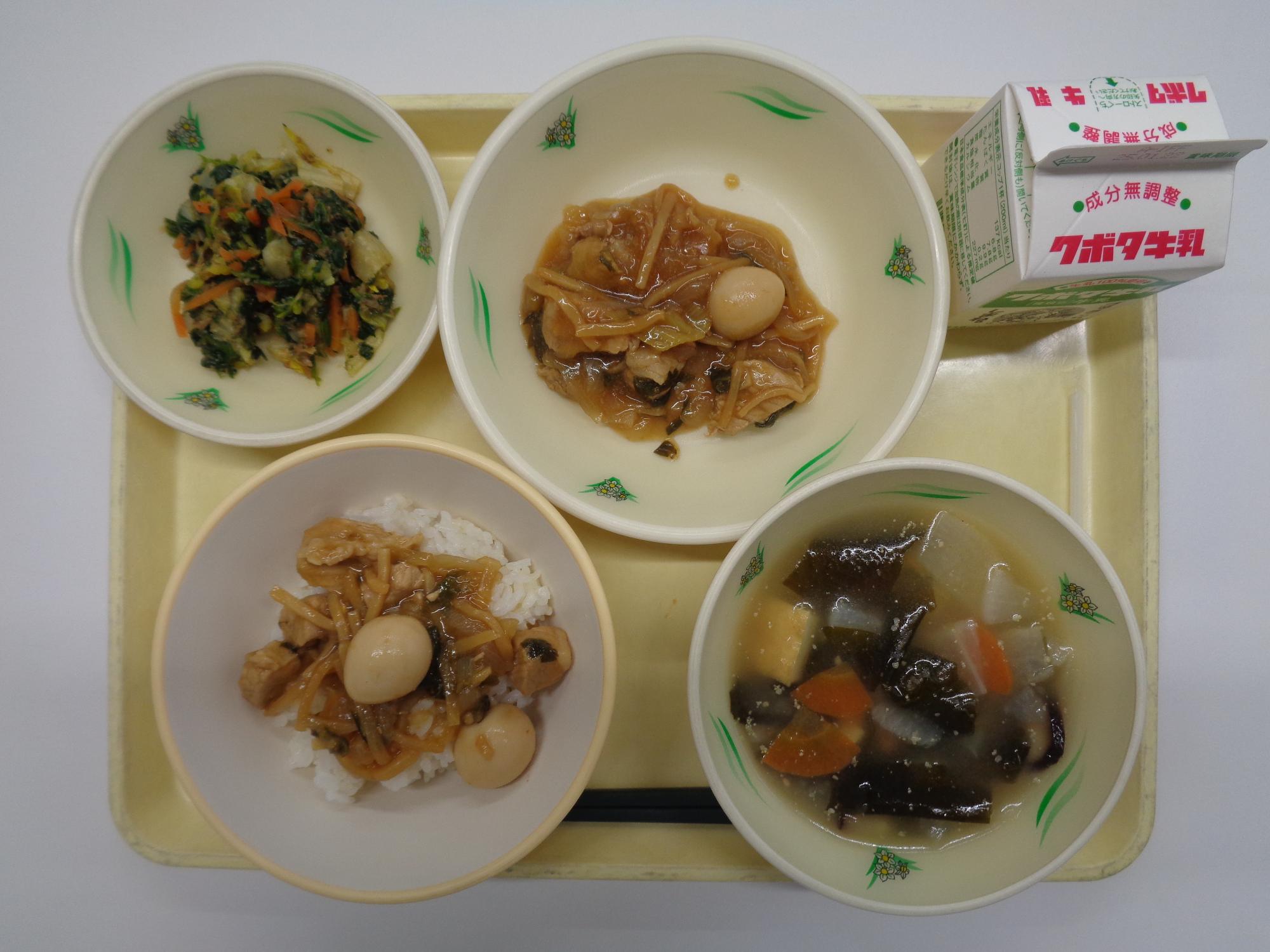 麦ごはん 牛乳 ●ルーローハン 白菜のおかか和え わかめスープ