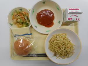 | 令和3年10月28日(木曜日) | バンズパン 牛乳 ハンバーガーパティトマトソース 花野菜のゆずドレッシングサラダ バジルソーススパゲッティ スライスチーズ |