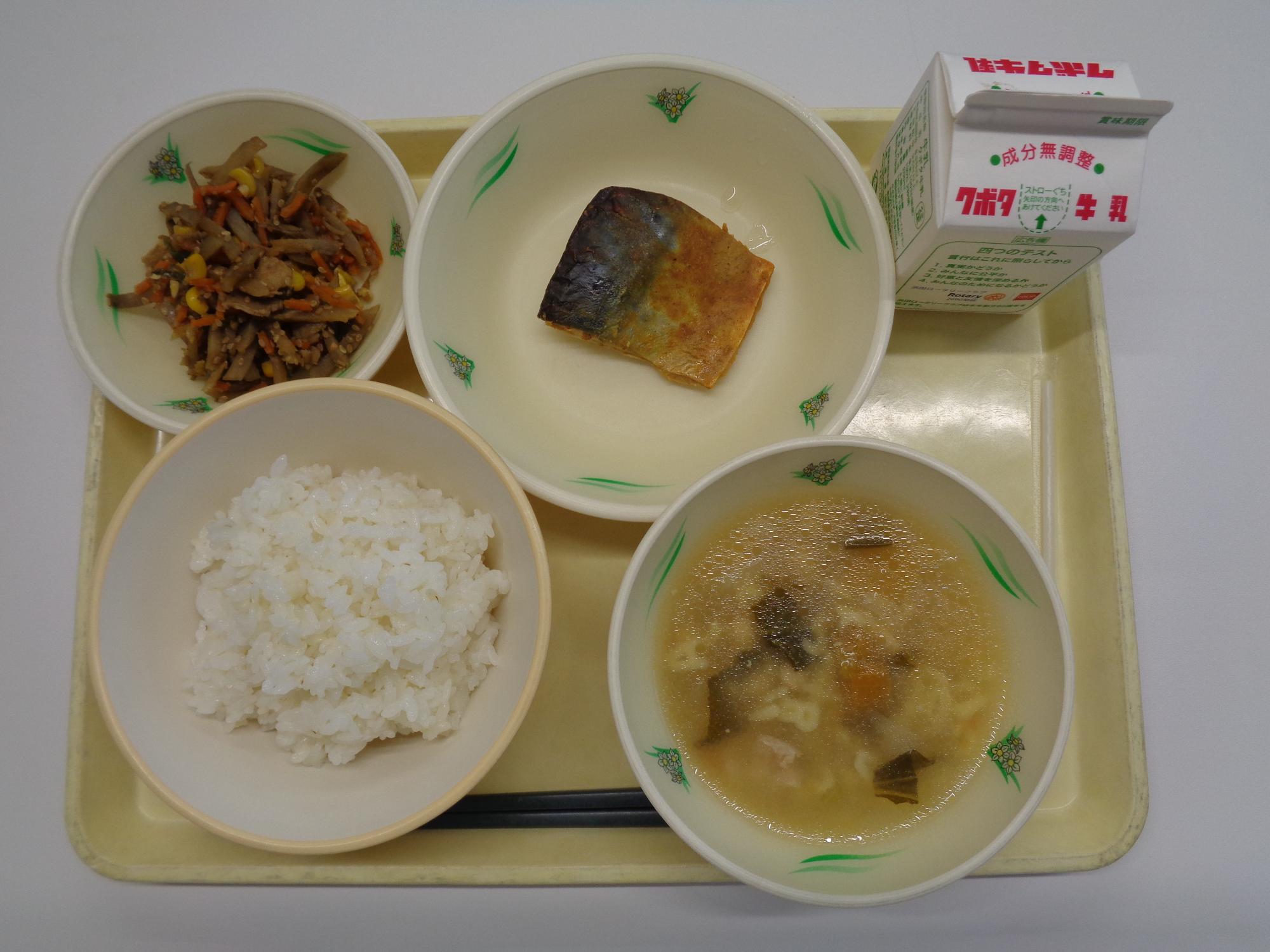 麦ごはん 牛乳 さばのタンドリーグリル 洋風きんぴら ABCトマトスープ |