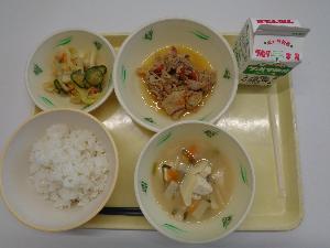 ~益田・鹿足・益田養護学校共通カミカミ献立~ ごはん 牛乳 チキンチキンごぼう 花野菜サラダ 厚揚げのすまし汁 |