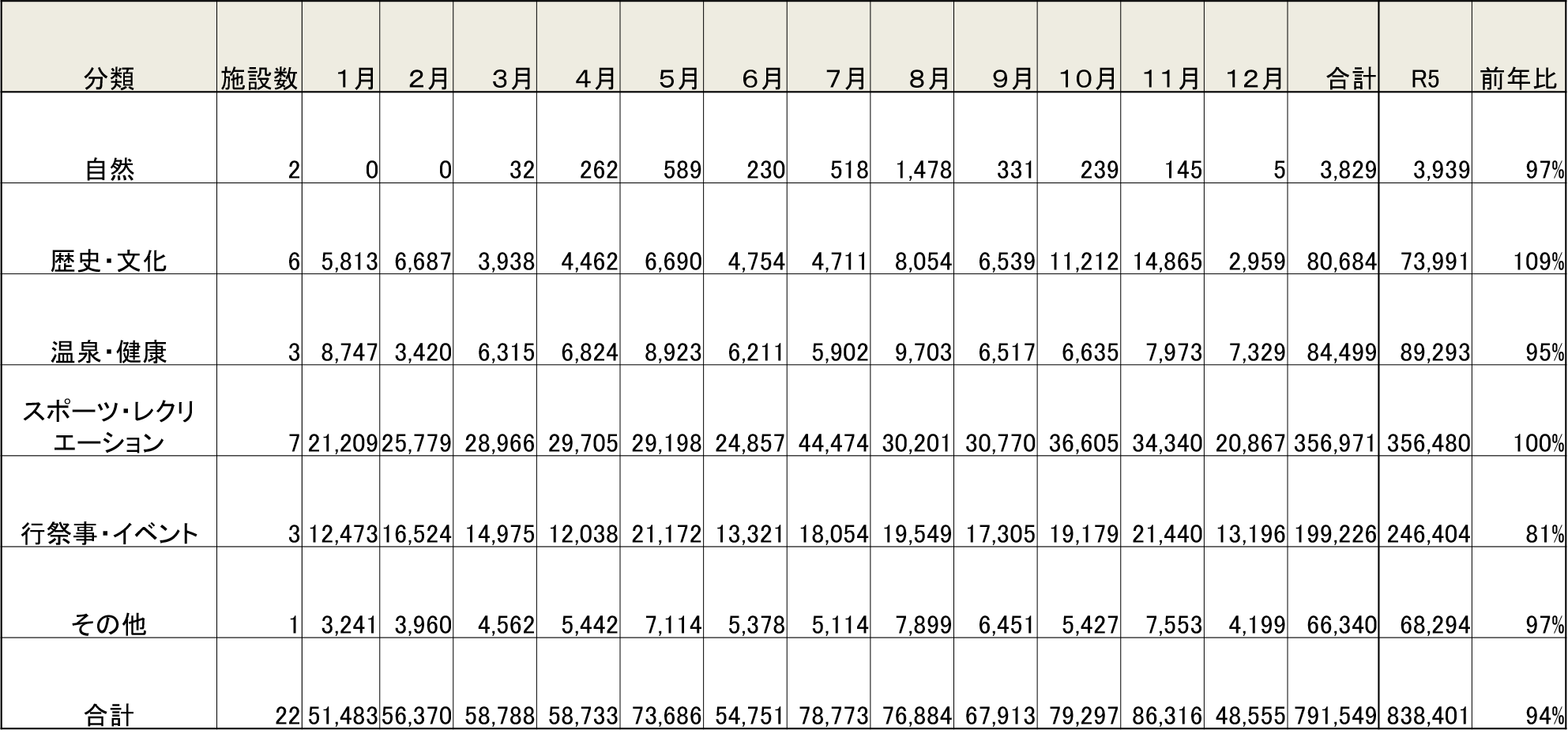 ※長期休業(冬季休業、臨時休業など)にかかる施設の客数については、0としています。